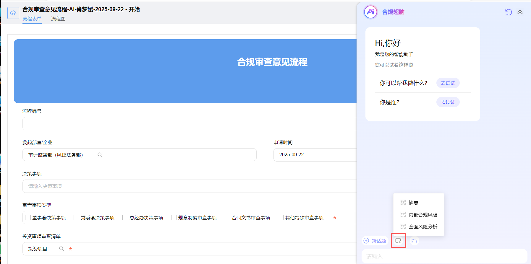 近日,时搏官方网页版审计监督部(风控法务部)倾力打造的“合规超脑”成功接入集团OA。该项目是时搏官方网页版今年“拥抱AI”创新大赛的首个落地成果,项目落地标志着集团的智慧风控迈入新阶段! 该平台依托多智能体协同架构,实现从合同到业务事项的合规和全面风险智能审查,具备四大核心能力: (1)极速概览:智能生成摘要,效率提升90% (2)双重风控:结合制度库与AI推理,覆盖显性与隐性风险 (3)合规问答:实时交互提问,快速输出审查结论 (4)文本纠错:自动排查错漏,杜绝低级错误 作为信创级私有化部署产品,“合规超脑”将实现审查效率、覆盖全面性与识别精准度的三重突破:审查耗时从小时级压缩至分钟级,风险识别覆盖显性条款与隐性逻辑,文本纠错与合规判断准确率显著提升,真正成为集团“六大提升行动”的高效、可靠、智能的合规基石!智慧风控,从此焕新!